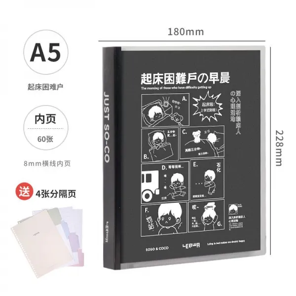 시스템다이어리 루스 리프식의 낱장 잘생김 두꺼운 큰사이즈 B5 탈착 큐트 심플 메모장 스프링노트 2월17 4179200195, A5 -일어나다 어려움 문