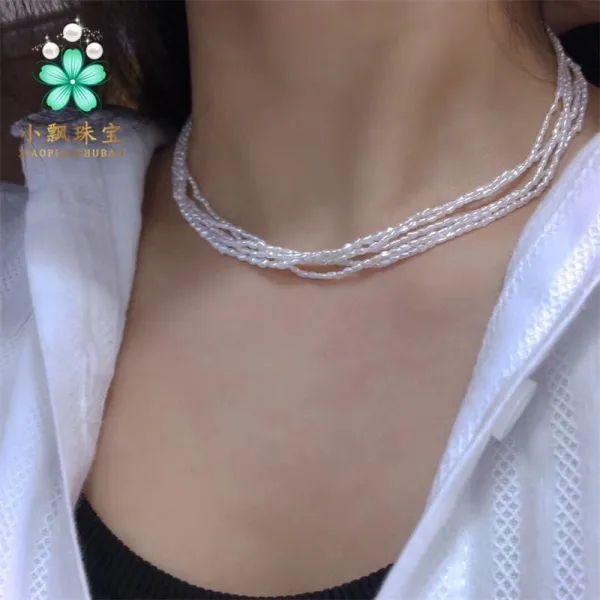 미니 밥풀 진주 목걸이 담수 좁쌀 못난이 진주 코디 얇은 핵 비드 진주 오로라 키시 천연 해수 세련된 서양식 특징 작은 체인