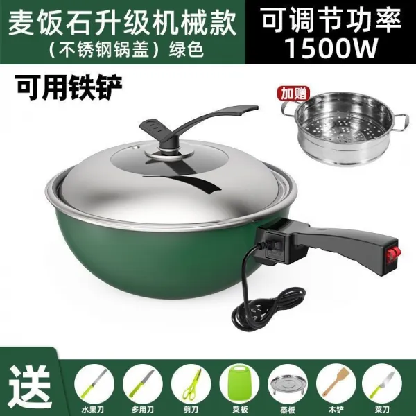 코팅팬 전기 볶음팬 멀티 가정용 볶음요리 일체 식 기숙사 어탭터 고출력 대대적으로 띄우다 냄비 2월17 4133446840, 그린 보리 밥 석 유리 뚜껑 찜통 기