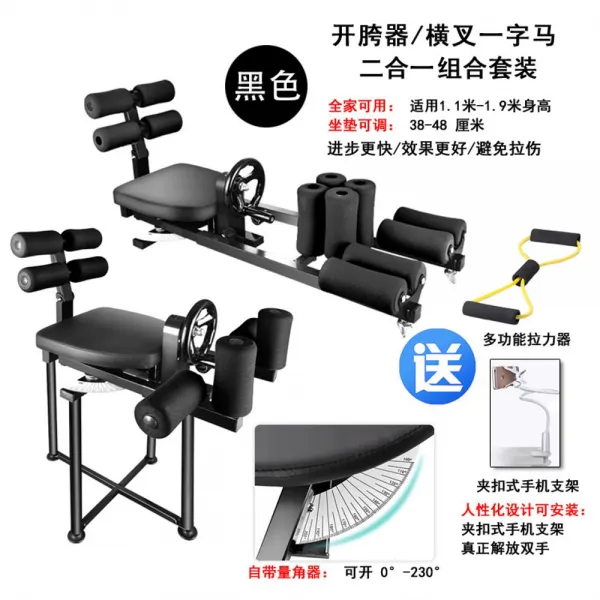 다리 찢기 기계 세로 가로 다리찢는 사타구니 운동 기구 강제 안쪽 허벅지 스트레칭 발레 태권도 요가, 9.블랙2in1