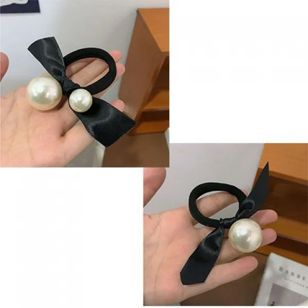 흑고무줄 클래식 진주 나비넥타이 머리밴드 프렌치 머리끈 악세사리 2938492228, 한 알 진주 _두개다 진주