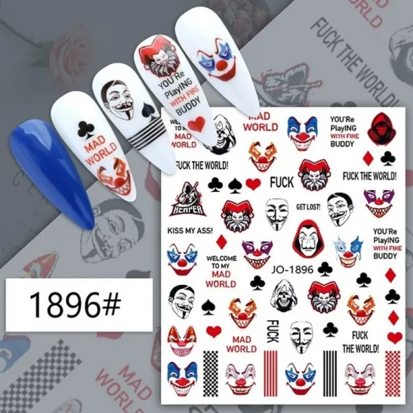 할로윈네일스티커 네일데코스티커 붙이는네일손톱 스티커 귀여운 할로윈 네일 아트 스티커 해골 호박 마녀 슬라이더 광대 짜증 네일 데칼 장식 네일 랩