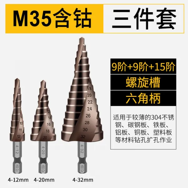 다용도드릴비트 보탑 구멍 따개 만능 타공 철강이 뛰어나다 하드 코어 테이퍼드 금속 멀티 스텐레스 계단 4637176973, 1, M35 나선홈 쓰리 피스이다 A패키지