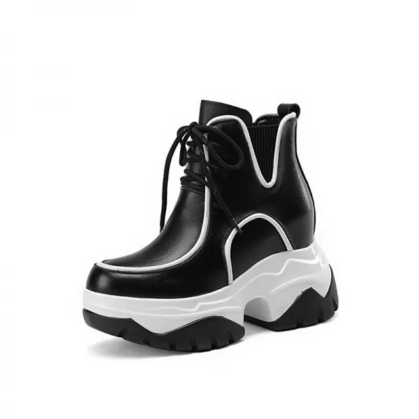 가죽워커 10CM 키높이 여성 작은 하이탑 통굽힐앵클부츠 리얼가죽 가보시 웨지 따르다 워커부츠 4975589953