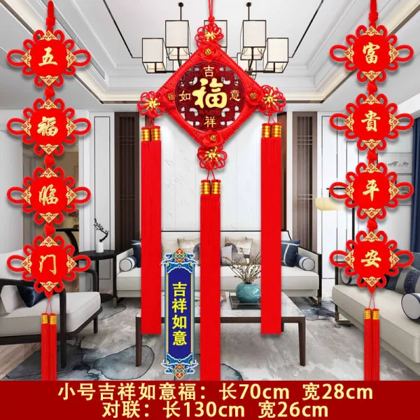중국매듭 복숭아나무 걸이용품 큰사이즈 응접실이 있다 티비 기함 새집 읍내로 이사하다 벽사 복자 대련 장식 4712352705, 쓰리 피스이다 --미니 사이즈 :행운