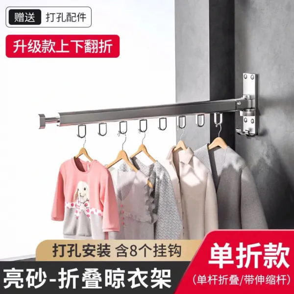 접이식건조대 베란다 위로 넘어가다 실내 빨래건조봉 벽 걸이식 창 밖 신축 소호 형 이불건조 신기 2860079345, 실버 싱글 꺾다 -업그레이드 위로 넘
