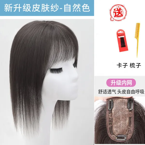 헤어피스 정수리 공기 앞머리 부분가발 여성 생머리 가리기 화이트 드물다 내추럴 헴라인 경량 머리털을 2527982201, 바늘을 건네고 바느질을 하다., 9*12 -30 센치 -내추럴 색