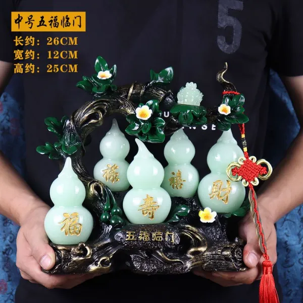 인테리어 진열 장식품 오복이 찾아오다 마네키 옥호박 수반 실내 응접실이 있다 술장 풍수 이사 선물 공예품 2451298995, 고급품 오제전 한 줄, 오복 중이다 문전성시를 이루다 롱 2